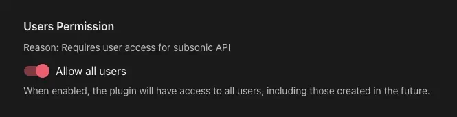 Some plugins are user-scoped, meaning they operate on a per-user basis (like scrobblers). For these plugins, you need to configure which users have access: